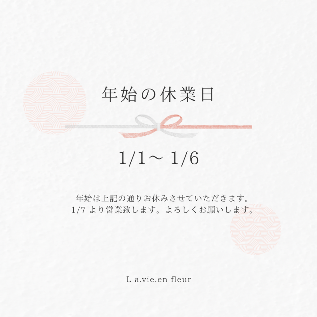 2026.01.012026.01.01に投稿 投稿者 la-vieen 2026年 よろしくお願い致します 新年 明けまして おめでとうございます!! 2026年 1月1日~6日 お正月休み 1月7日水曜日より営業させていただきます。 本年も 宜しくお願い致します!!